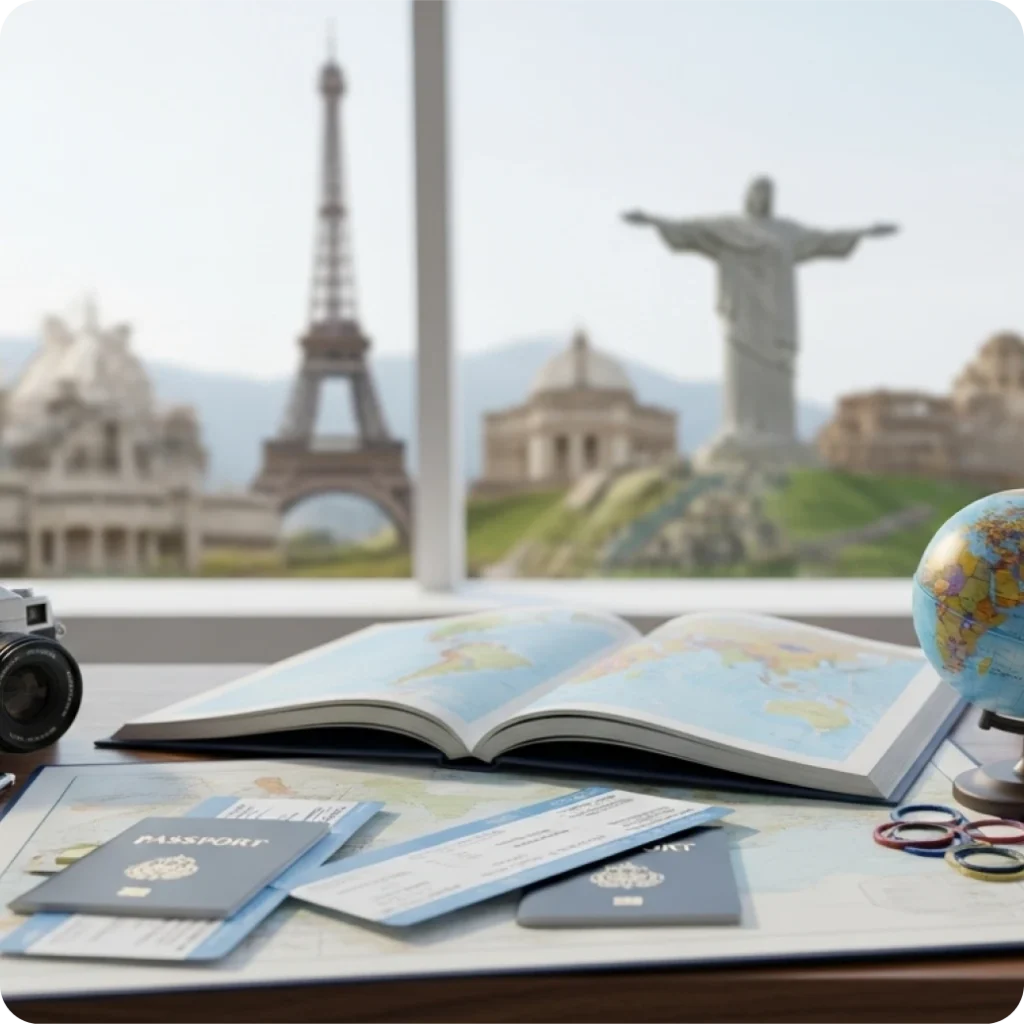 Cuidamos da busca e emissão das melhores passagens e seguros, com horários e preços ideais para seu itinerário.